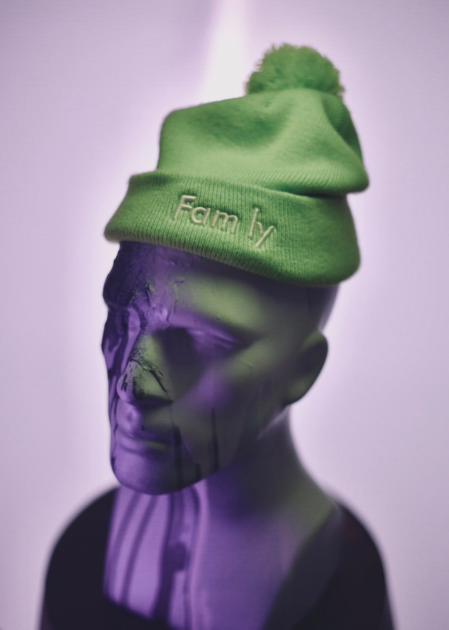 No I in Family. Pom pom knit beanie, makes you taller than your brother.